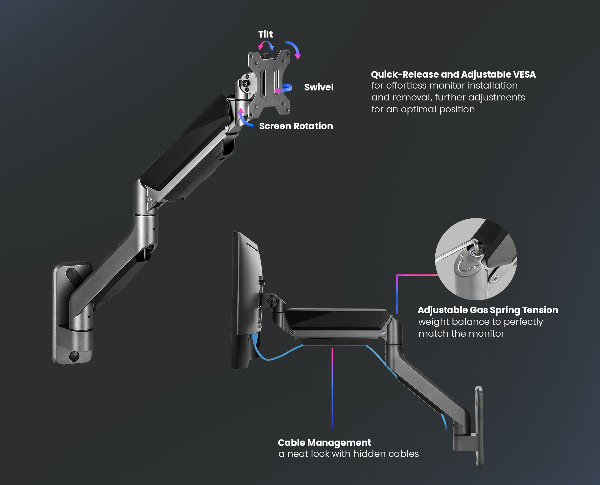 Heavy-Duty Gas Spring Monitor Wall Mount