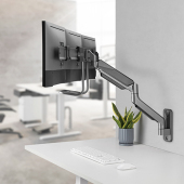 LDA39-3112 Triple-Monitor Gas Spring Monitor Wall Mount positions three monitors along a horizontal bar that allows monitors to be moved and manipulated from a single handle location. Able to hold and easily position three monitors from 17"-27“ weighing up to 6kg/13.2lbs per screen! A quality gas spring mechanism provides perfect balance for ultimate maneuverability. The LDA39-3112 is the ideal choice for areas that benefit from wall mounting three monitors.