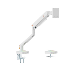 Feel the energy flow in orange. The LDT111-C024UCL delivers stable support for monitors up to 20 kg (44 lbs) while remaining economically priced. Its orange-accented design brings both style and a lively, dynamic experience to your workspace. The monitor arm features a quick release VESA plate and joints for easy installation and removal, a built-in spring tension mechanism for precise weight adjustment, a smart base with USB-A & USB-C ports for data transfer and charging, and a RGB mode button offering 16 lighting modes to create a personalized ambience. It combines vibrant design with reliable strength for a flexible and dynamic workspace.