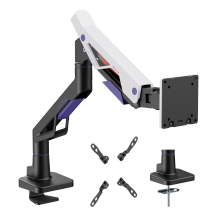 The LDT54-C024H is an ultimate addition to the user's gaming setup. This sleek and stylish arm features a robust structure that firmly holds most 27"~35" monitors up to 14kg/30.8lbs. With great flexibility, the monitor can be easily adjusted to the perfect position for maximum comfort and viewing pleasure. Removable VESA plate enables easy installation. Integrated cable management keeps a clean look. In addition, available in fine texture white and space grey color options for different preferences. So why wait? Upgrade the gaming setup today and dominate the gaming gear market with the LDT54-C024H Gaming Monitor Arm!