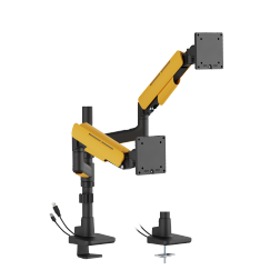- Integrated 270° Rotation Stop: prevents monitor arm from swinging into screens or walls