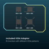Engineered for serious gamers, the LDT96-C012L supports massive screens up to 57" and 27kg—delivering unmatched stability and performance with a wide range of adjustment for optimal viewing. It enhances immersion with 20 dynamic RGB lighting modes, creating a personalized gaming atmosphere that adapts to your style. A built-in one-way bearing ensures smoother, more controlled tilt adjustments, while the quick-release VESA plate and joints make setup and removal effortless. With support for maximum VESA 200x200 via included adapter, even large-format screens stay secure and ready for action.