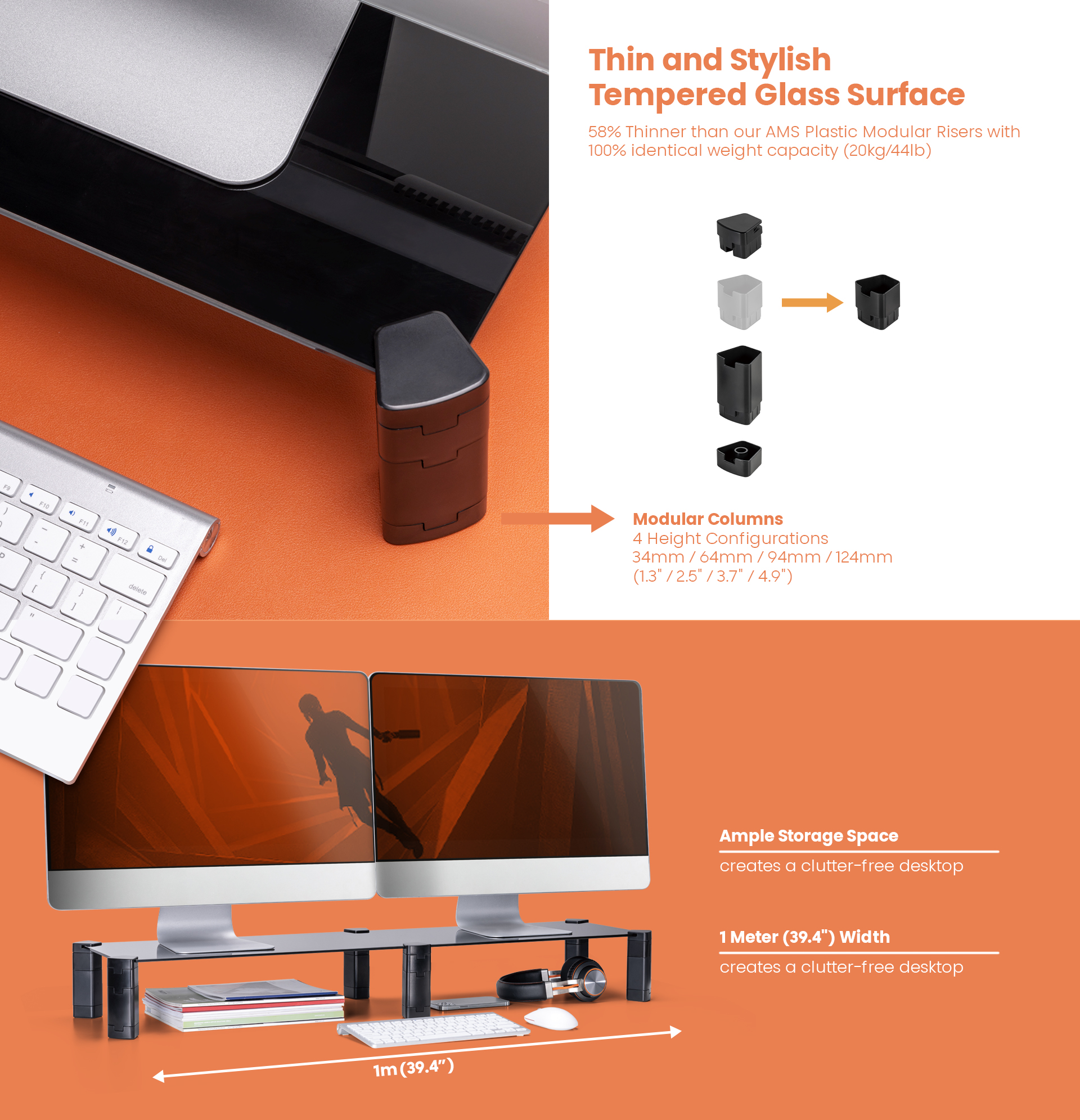 Tempered Glass Riser, Modular Design for Height Adjustment