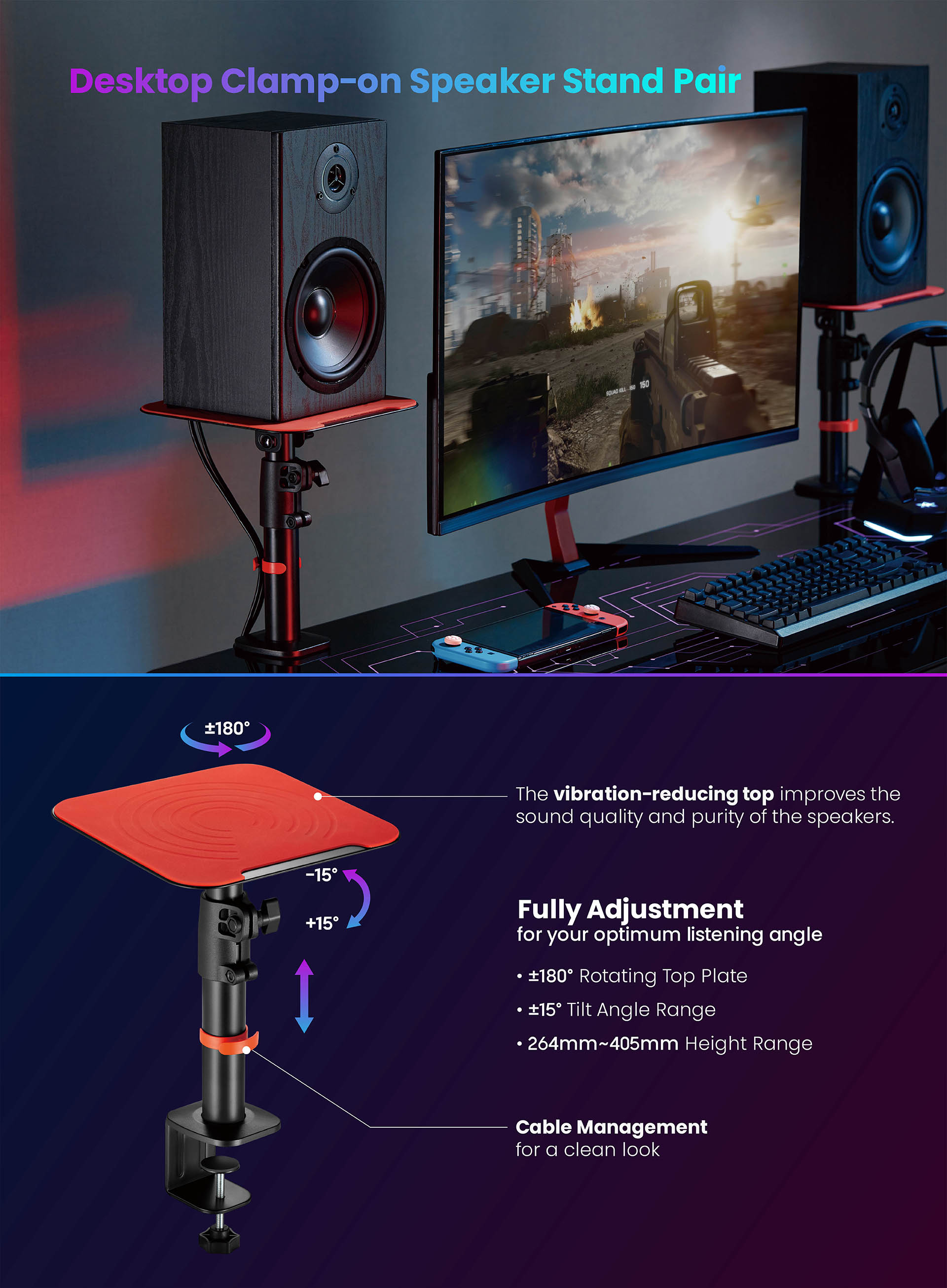 Desktop Clamp-on Speaker Stand Pair