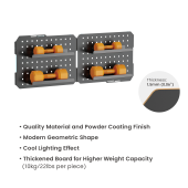 The Wall-Mount Dual Pegboard Set with LED Lighting provides a modern and efficient solution for organizing any workspace. Precision engineered, this dual pegboard system features evenly spaced perforations for versatile accessory placement and expanded storage capacity. Built-in LED lighting integrates seamlessly into any modern workstation or creative environment, providing enhanced visibility and style. Its durable construction and minimalist design create a perfect blend of organization and aesthetics, enhancing any space it occupies. Designed for secure wall mounting, it provides a stable and space-saving storage solution that keeps essentials easily accessible while maintaining a clean and organized environment.