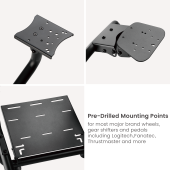 Thanks to the solid steel construction, the cockpit brings you a whole new level of comfort. The pre-drilled mounting points provide compatibility with most major wheel and pedal brands including: Logitech, Fanatec, Thrustmaster and more. The comfortable reclining seat offers smooth forward and back glide of 180mm (7.1″) providing ample legroom. An easy-grip crank handle allows the seat to be adjusted from 30° to 90° for the best driving position. Pick up the LRS03-BS and customize it with your own graphics now!
