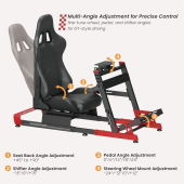 Fully adjustable, it features smooth fore–aft sliding, tilting, and height and angle adjustments across key components for a personalized fit. The robust square tube frame provides excellent stability for direct drive wheels up to 16 Nm and heavy-duty pedals. Pre-drilled mounting points allow easy installation of most wheels, pedals, and accessories.