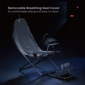 This cockpit features a removable breathing seat cover for ultimate comfort and easy maintenance, designed for avid gamers and racing enthusiasts. With pre-drilled mounting holes, the cockpit is compatible with a wide range of wheels (up to 5N·m), shifters, and pedals from leading brands like Logitech, Fanatec, and Thrustmaster. Its foldable design makes it easy to store, making it a perfect addition to any gaming setup. Get ready to take your racing to the next level!